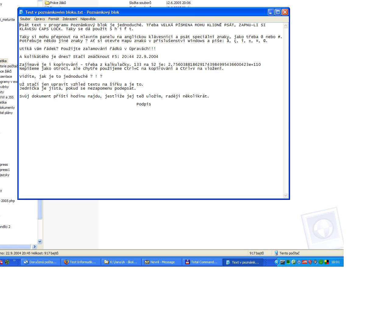 Text na opisování
